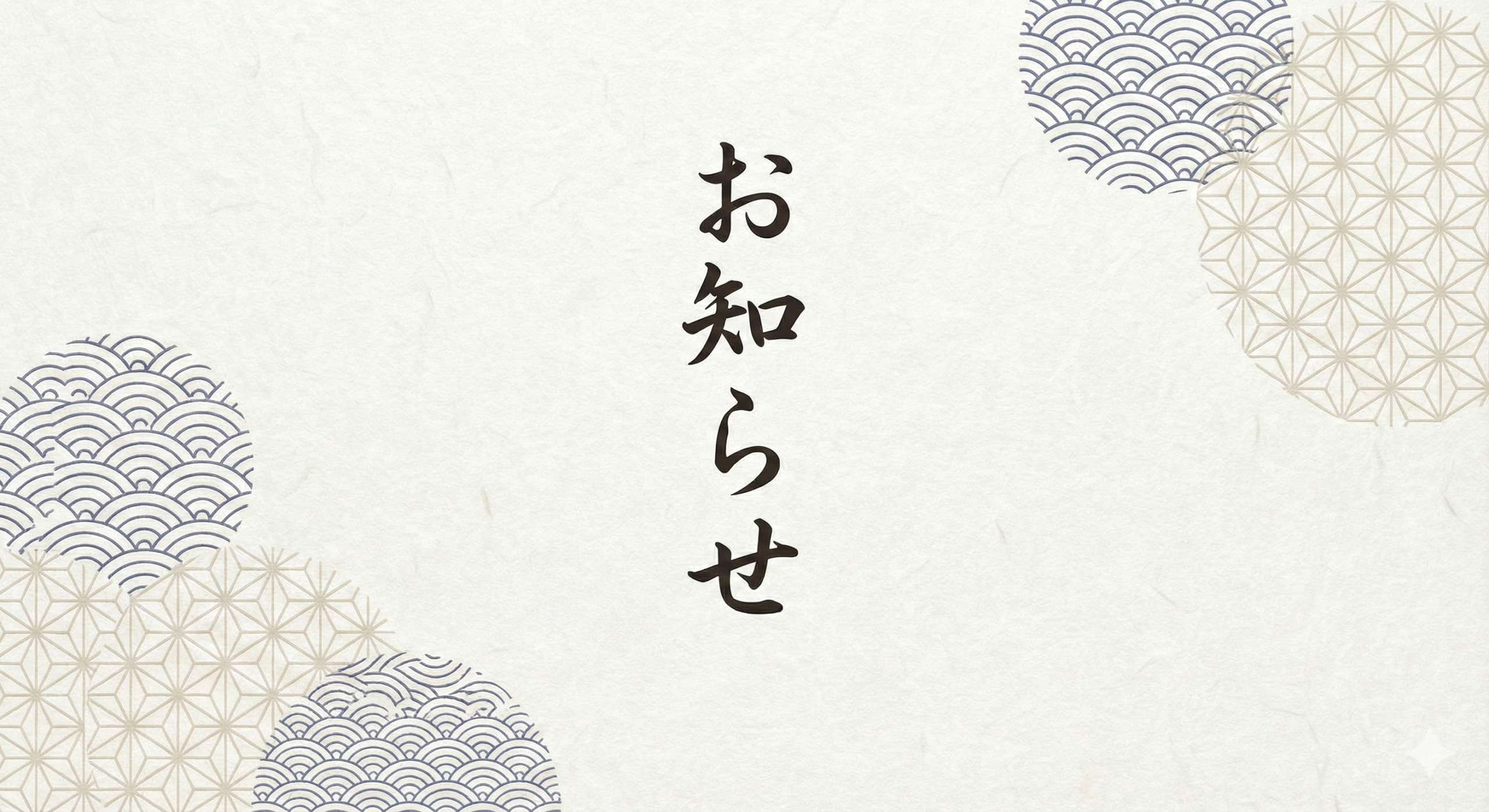 年末年始休業のお知らせ 2025.12.25 Tweet 年末年始休業のお知らせ 平素は格別のご高配を賜り、厚く御礼申し上げます。 誠に勝手ながら、弊社では下記の期間を冬季休業とさせていただきます。 【休業期間】 2025年12月27日(土)~ 2026年1月4日(日) 休業期間中にいただいたお問い合わせにつきましては、1月5日(月)より順次回答させていただきます。 皆様にはご不便をおかけいたしますが、何卒ご了承くださいますようお願い申し上げます。 Tweet